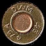 Producent: Deutscher Waffen und Munitionsfabrik, Karlsruhe; wyprodukowano w 1943 roku; łuska stalowa; 479 A to numer katalogowy DWM dla tego typu amunicji