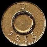 Producent: Gustav Genschov & Co., Durlach; wyprodukowano w 1933 roku; łuska z mosi±dzu 72 (72% Cu 28%Zn)