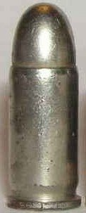 9x23 Bergman Bayard produkcji duńskiej. W łusce trzy poziome, głębokie przetłoczenia, spłonka zbita.