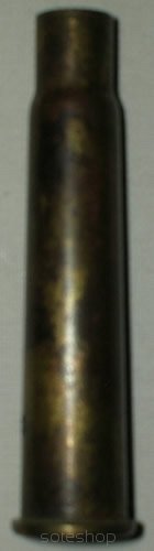 7,7x56R Lee Enfield produkcji brytyjskiej. Brak pocisku, szyjka łuski zatkana lakowym "korkiem".